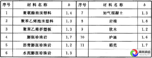 注:加氣混凝土、水泥膨脹珍珠巖的修正系數(shù),應為經(jīng)過烘干的塊狀材料并用瀝青等不含水黏結材料貼鋪、砌筑的數(shù)值。