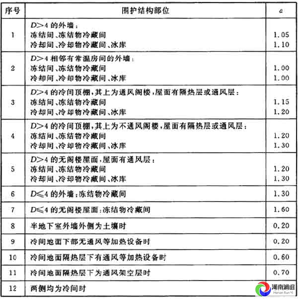 3 表內未列的其他室溫等于或高于0℃的冷間可參照各項中冷卻間的a值選用。